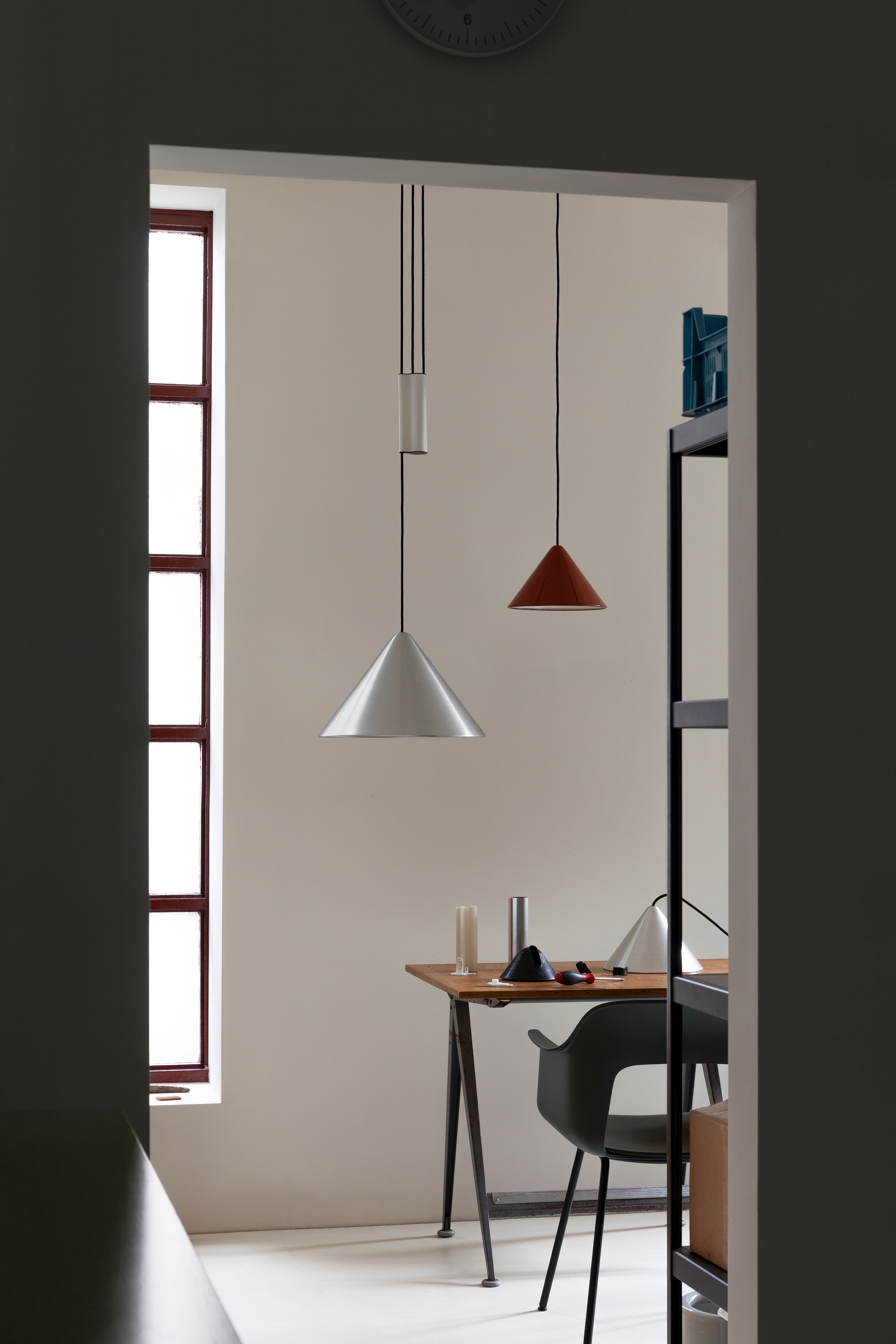 由Julien Renault 为HAY设计的Compass系列,以独特的锥形轮廓为统一特征,涵盖 吊灯与落地灯多种类型。该系列包含一款带360度旋转底座和伸缩臂的落地灯,既能 灵活替代顶灯,又可塑造优雅的拱形轮廓。吊灯设计涵盖经典固定线长天花板悬挂 款,以及配备配重装置的可调高度款。Compass系列精妙平衡造型与功能,提供适 用于家居与办公环境的多元照明解决方案